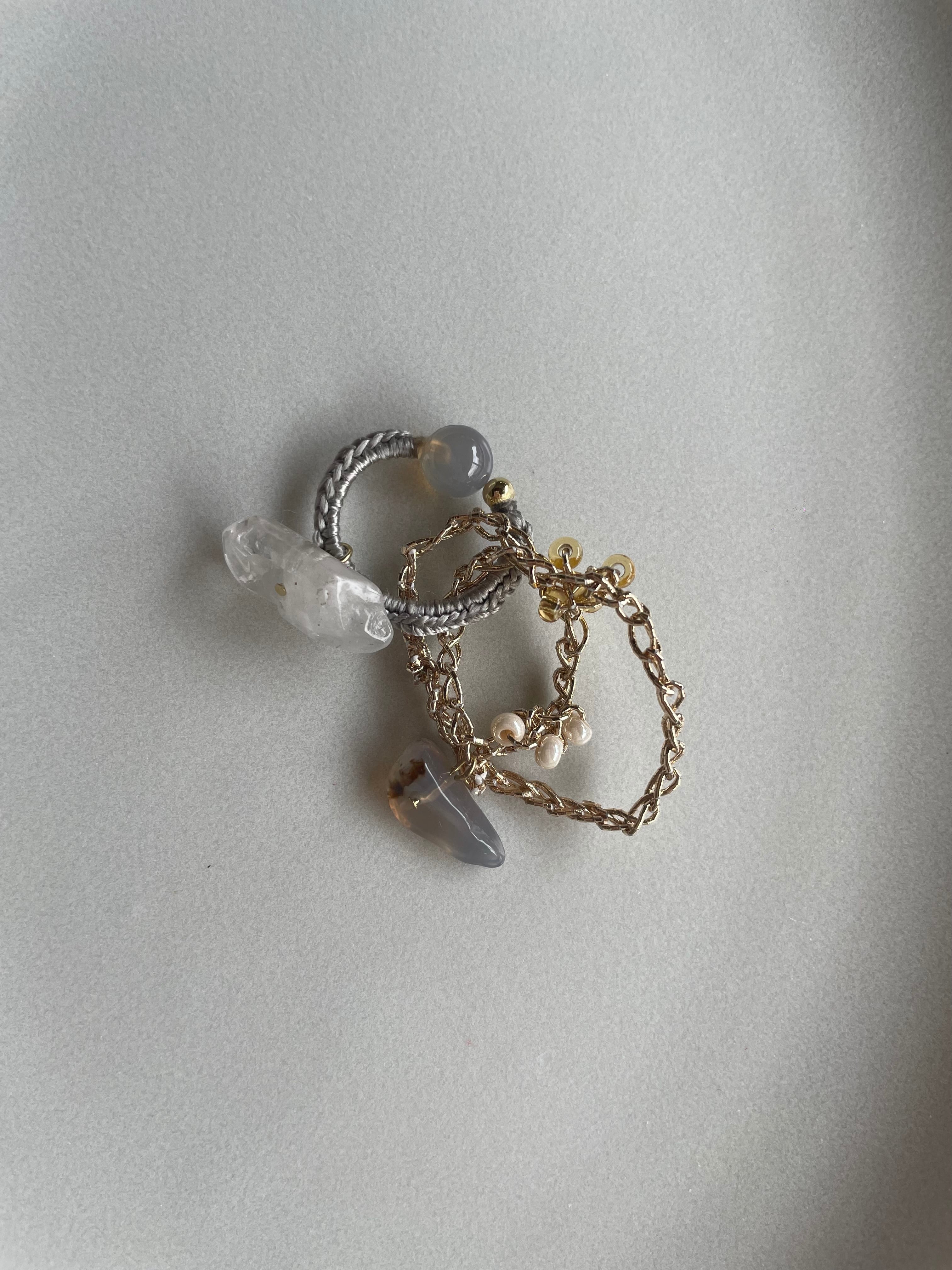 天然石とシルクのイヤーカフに糸で編んだチェーンの輪っかを付けました