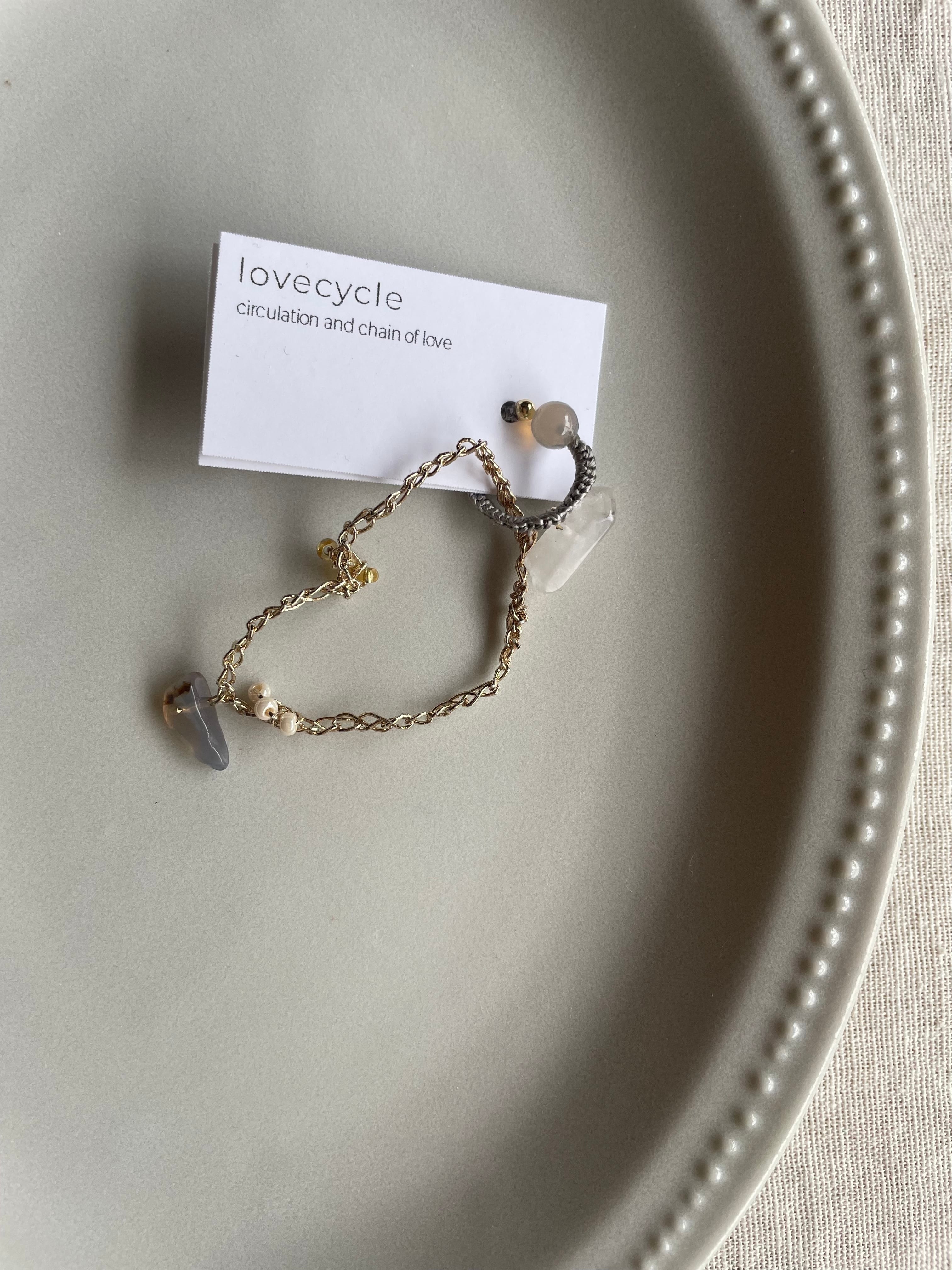 lovecycleではstaticeとセットにして販売していますが、私はその他corollaにも合わせて使っていますし、愛用している他のブランドのピアスやイヤカフにも合わせています。