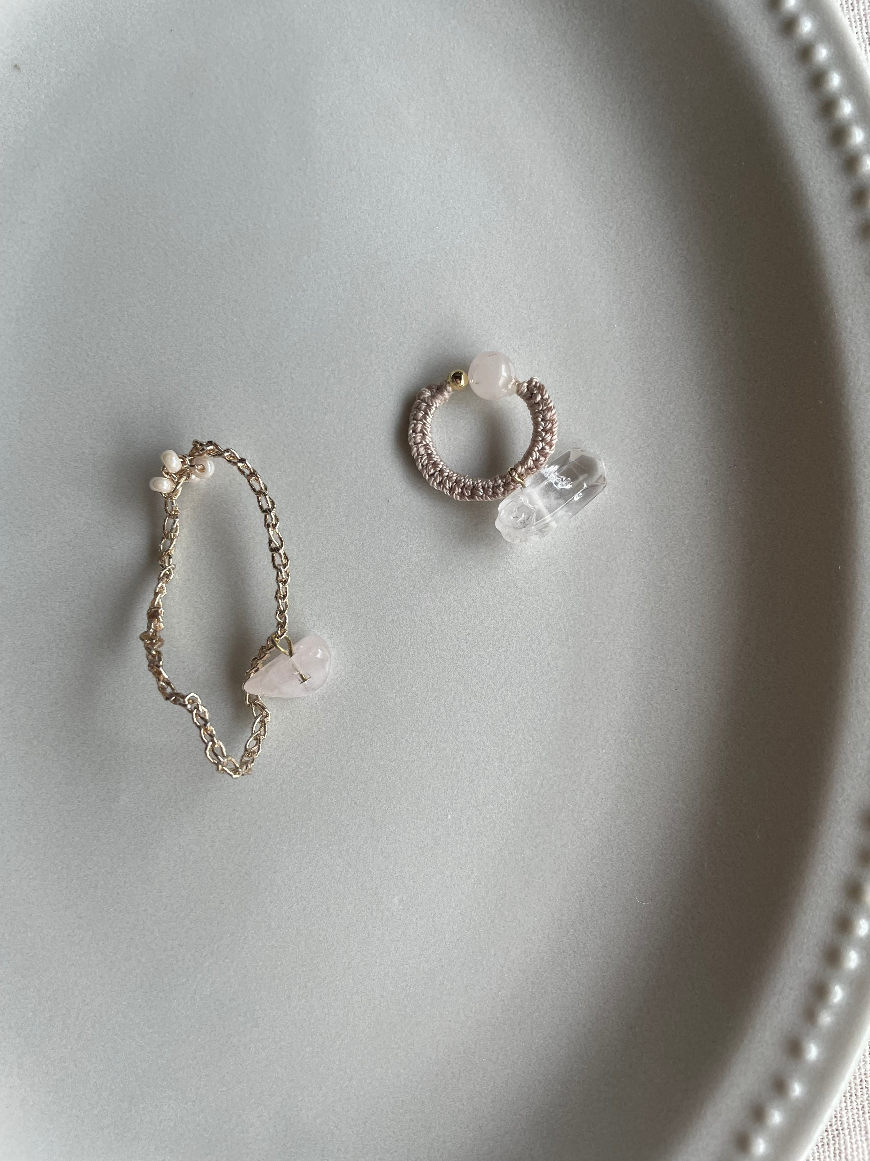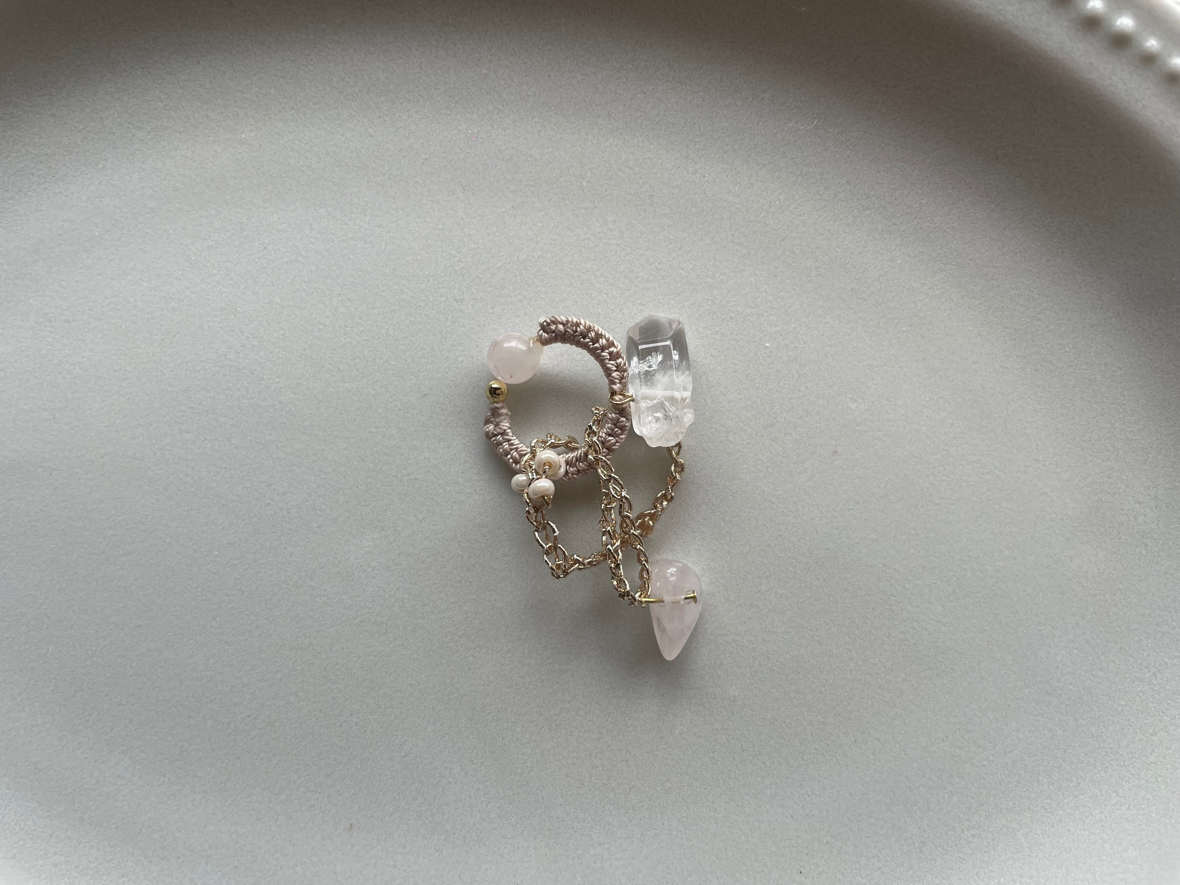 イヤカフ:ローズクォーツ・水晶