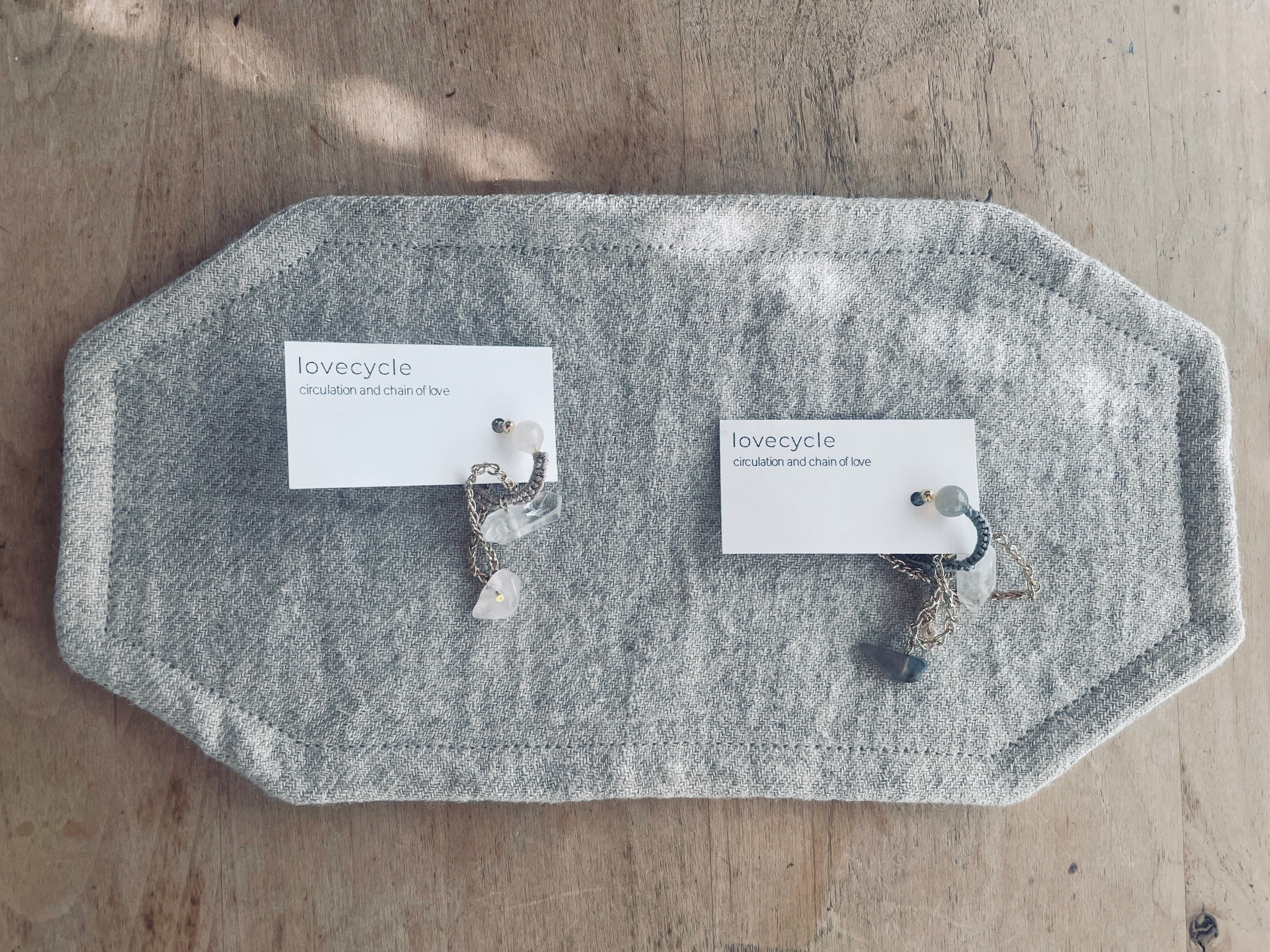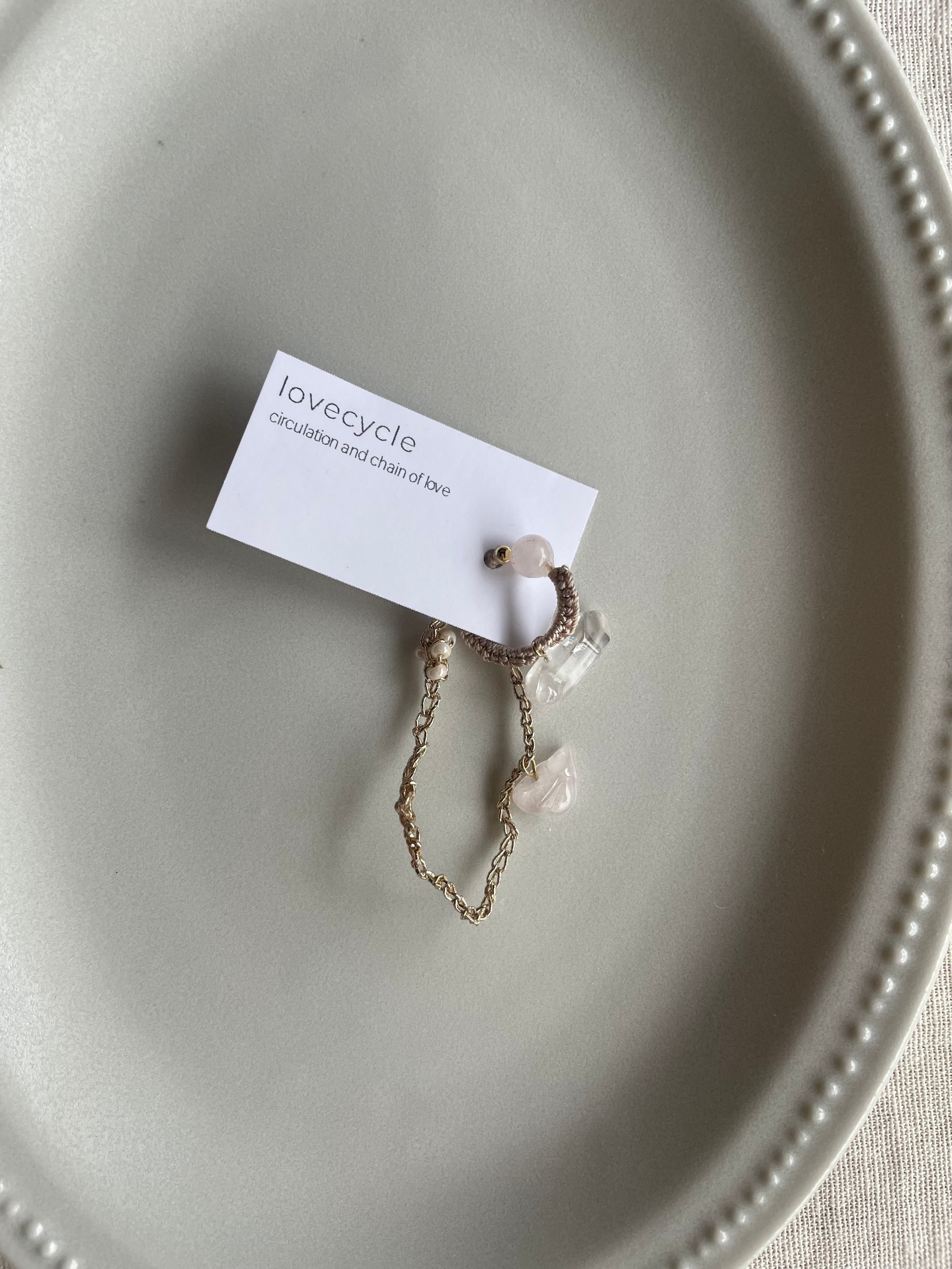 lovecycleではstaticeとセットにして販売していますが、私はその他corollaにも合わせて使っていますし、愛用している他のブランドのピアスやイヤカフにも合わせています。