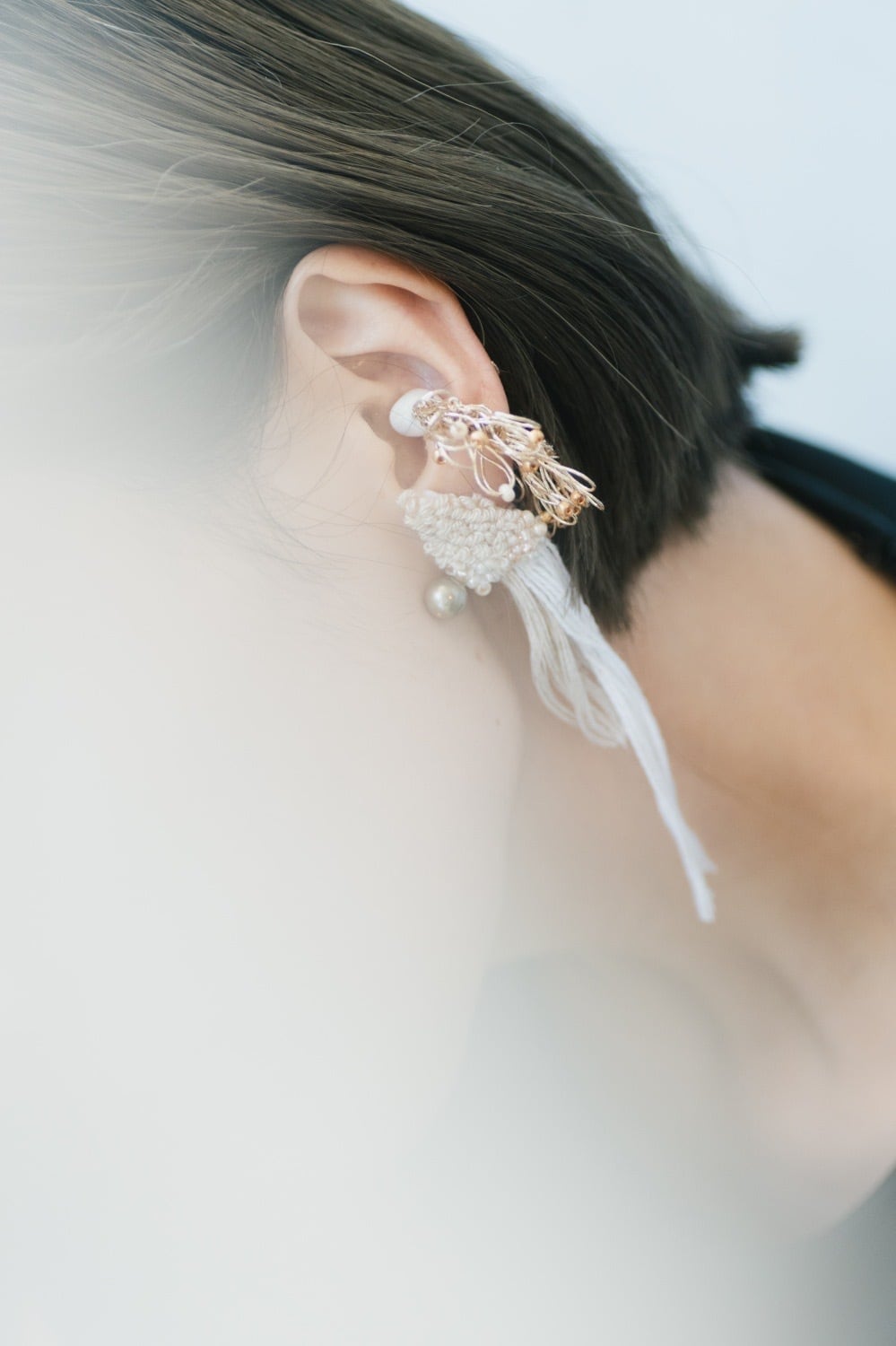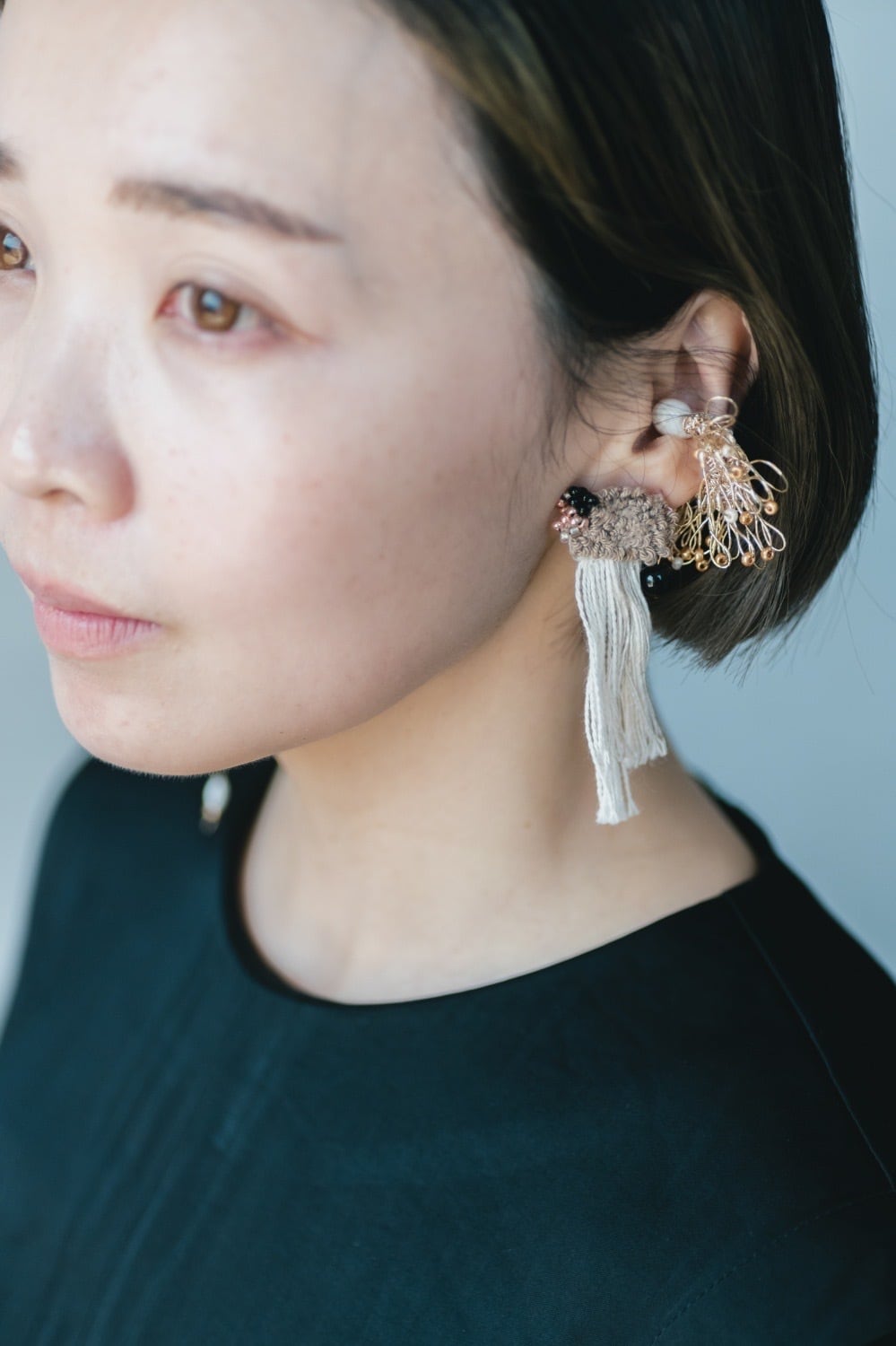 statice イヤリング ベージュ(片耳) ビーズ付き